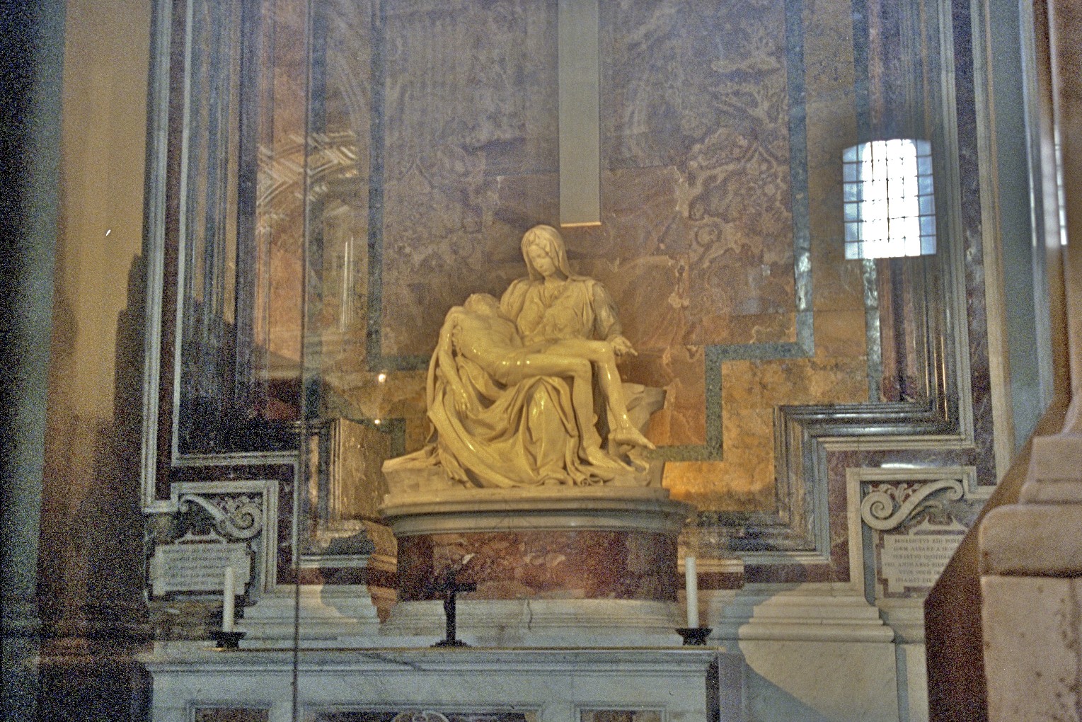 Hægra megin við innganginn er Pietà, höfuðafrek Michelangelos, höggvin 1499-1500 og sýnir sorg Maríu meyjar við lát Krists.