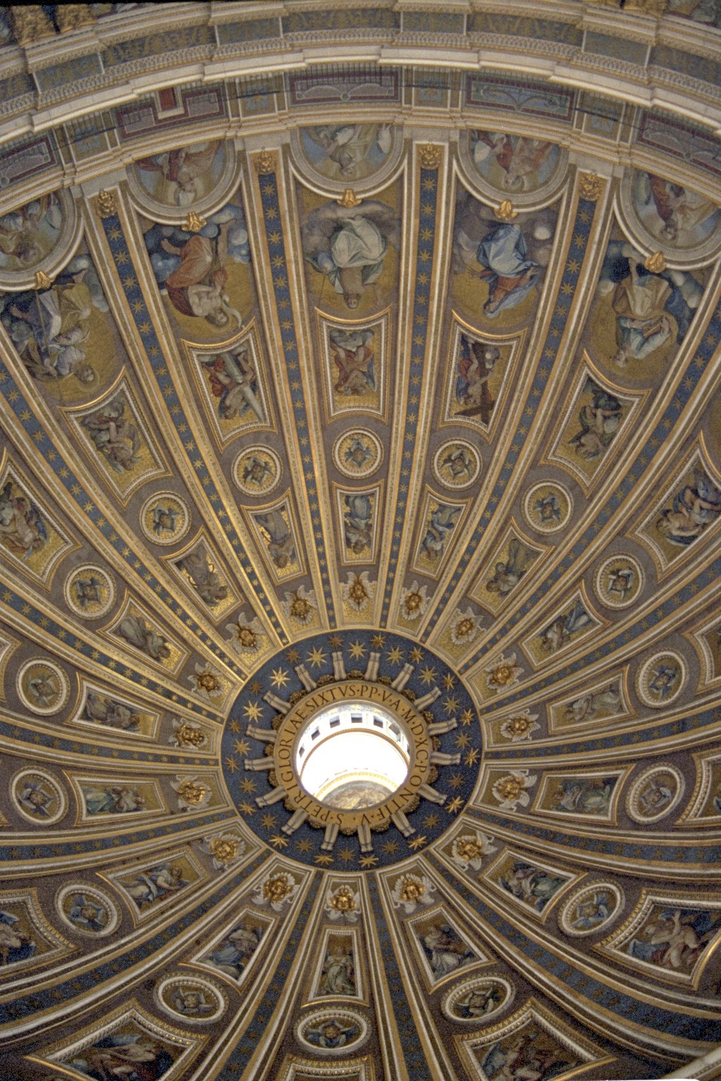 Hvolfþakið er eins konar stækkuð mynd af hvolfþaki Pantheons. Giacomo della Porta lauk við þakið og gerði það heldur léttara útlits en Michelangelo hafði gert ráð fyrir. Hvolfið er alsett steinfellumyndum.