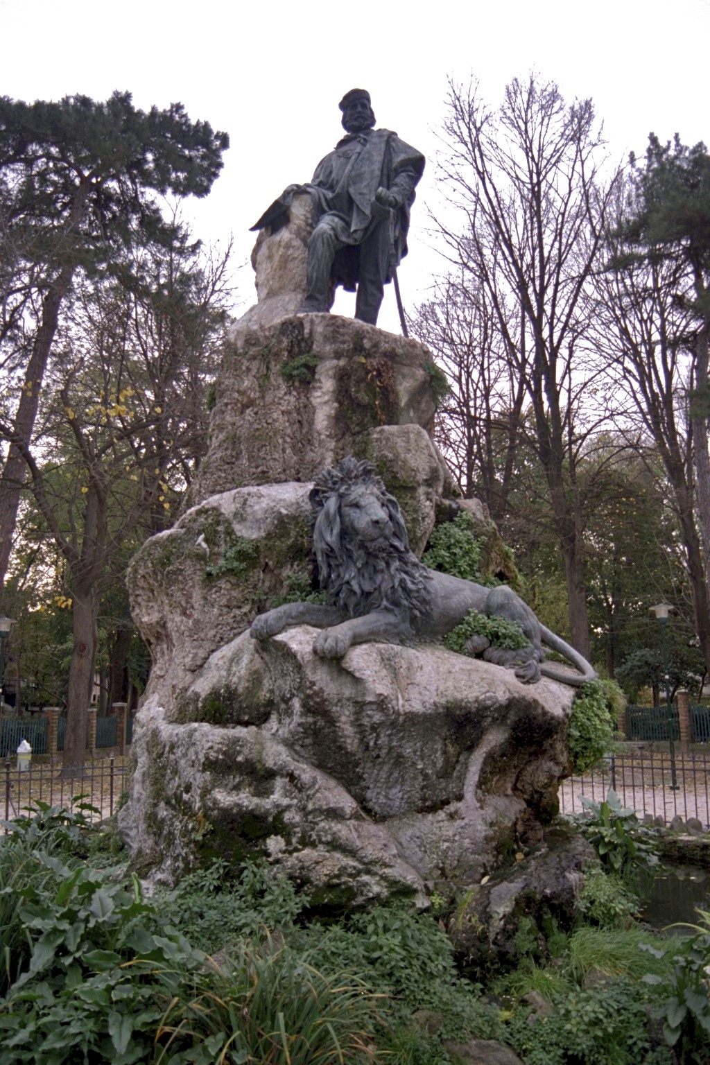 Í enda garðsins hér við götuna er minnisvarði ítölsku frelsishetjunnar Garibaldi eftir listamanninn Augusto Benvenuti frá 1895.