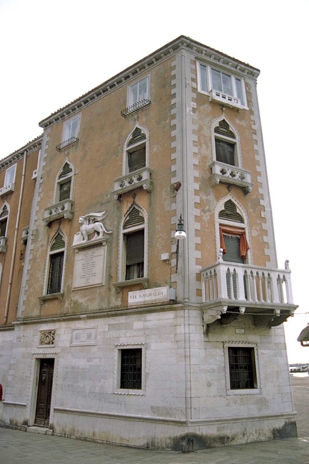Ef við höfum ekki mikinn tíma, getum við látið þessa skoðun nægja, snúið hér við og gengið lónsbakkann til hertogahallarinnar. Að öðrum kosti höldum við áfram eftir lónsbakkanum, yfir næstu brú og komum þar að mjóu hornhúsi milli Riva degli Sette Martiri og Via Garibaldi. Alls er þetta um 200 metra leið.