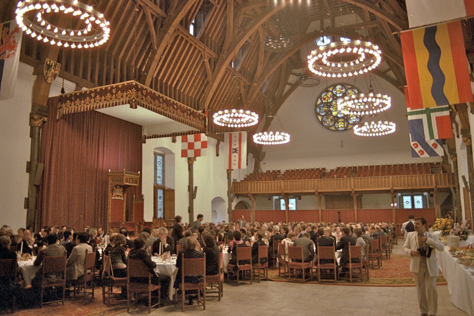 Í Ridderzaal er voldugur salur með miklum bitum og steindum gluggum. Þetta er talin ein fegursta bygging Norður-Evrópu í gotneskum stíl. Að baki er annar salur, Rolzaal. Á torginu fyrir utan var frelsishetjan Oldenbarnevelt tekinn af lífi.