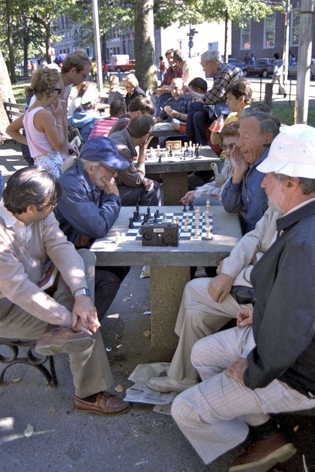 Washington Square er sunnudagsstofa þorpsbúa, eins konar St Germain des Prés. Þar kaupa þeir fíkniefni, tefla skák, renna sér á hjólabrettum, hlusta á farand-tónlistarmenn og ræða um, hvernig verjast megi geðbiluðum skipulagsyfirvöldum, sem vilja láta rífa allt gamalt og gott.