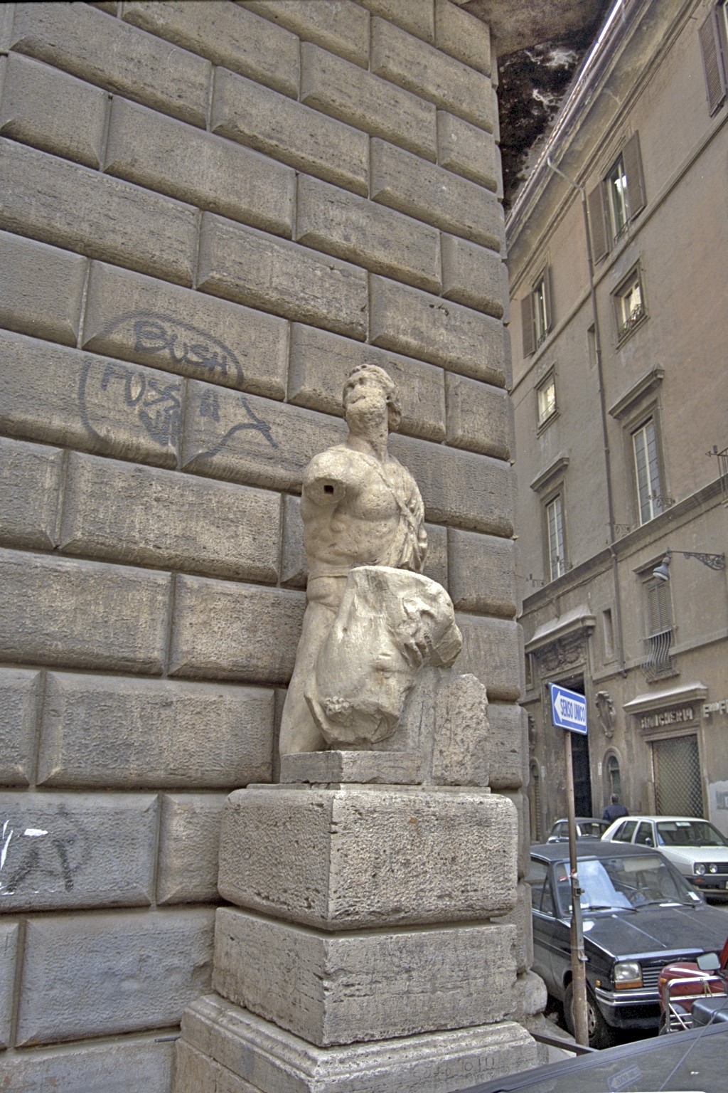 Héðan eru aðeins nokkrir metrar inn að Piazza Navona og við getum vel skotizt eftir Via Cuccagna til að líta á torgið. Að öðrum kosti förum við frá torginu eftir Via di San Pantaleo til Piazza di Pasquino. Þar á horninu er illa farin stytta, sem sennilega er frá 3. öld f.Kr.