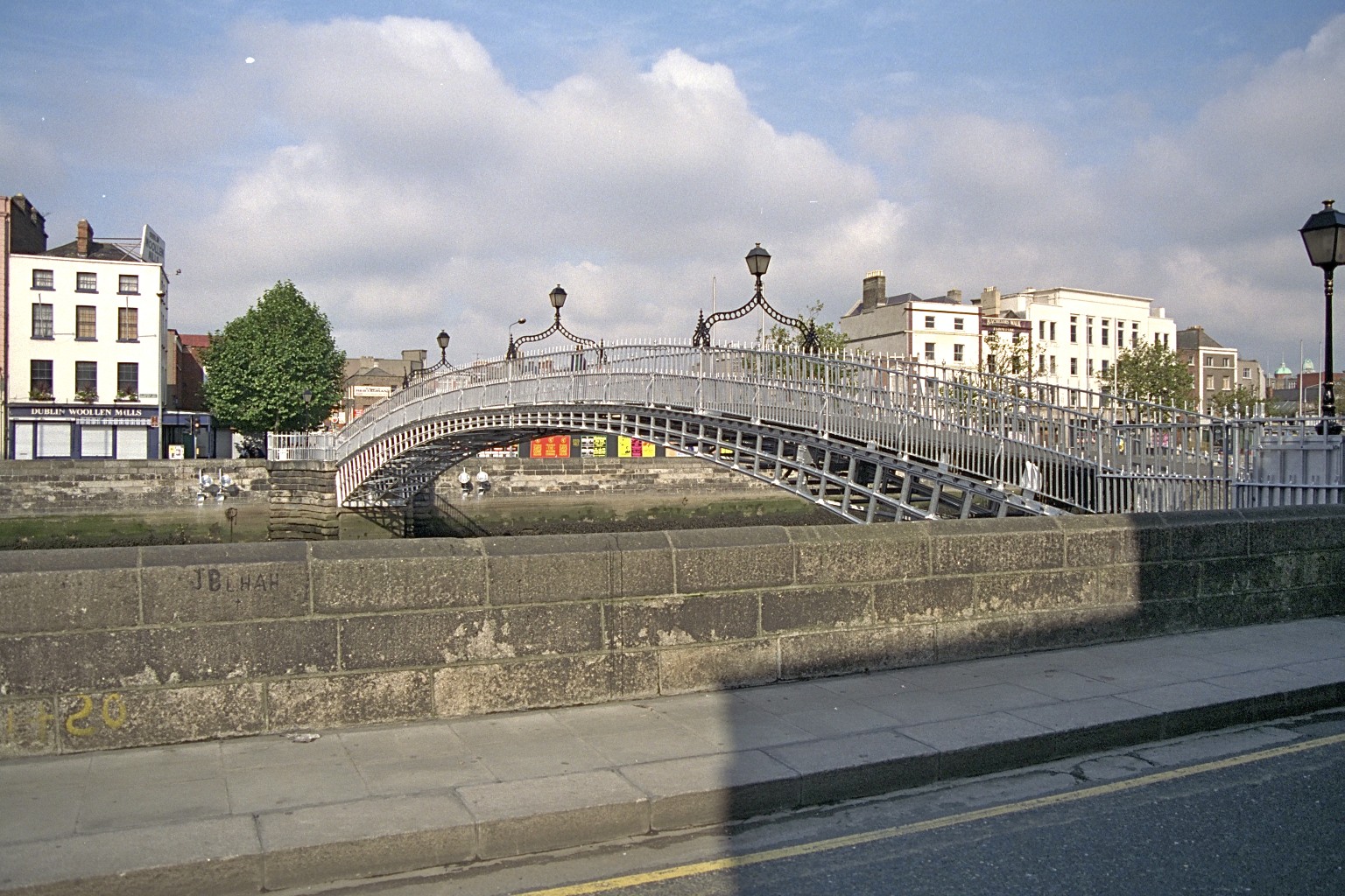 Ha’penny Bridge dregur nafn af brúartolli, sem tekinn var af vegfarendum allt fram til 1919. Þessi smíðajárnsbrú var reist 1816 og er skemmtilegasta brúin af ótalmörgum, sem tengja vinstri og hægri bakka árinnar Liffey.