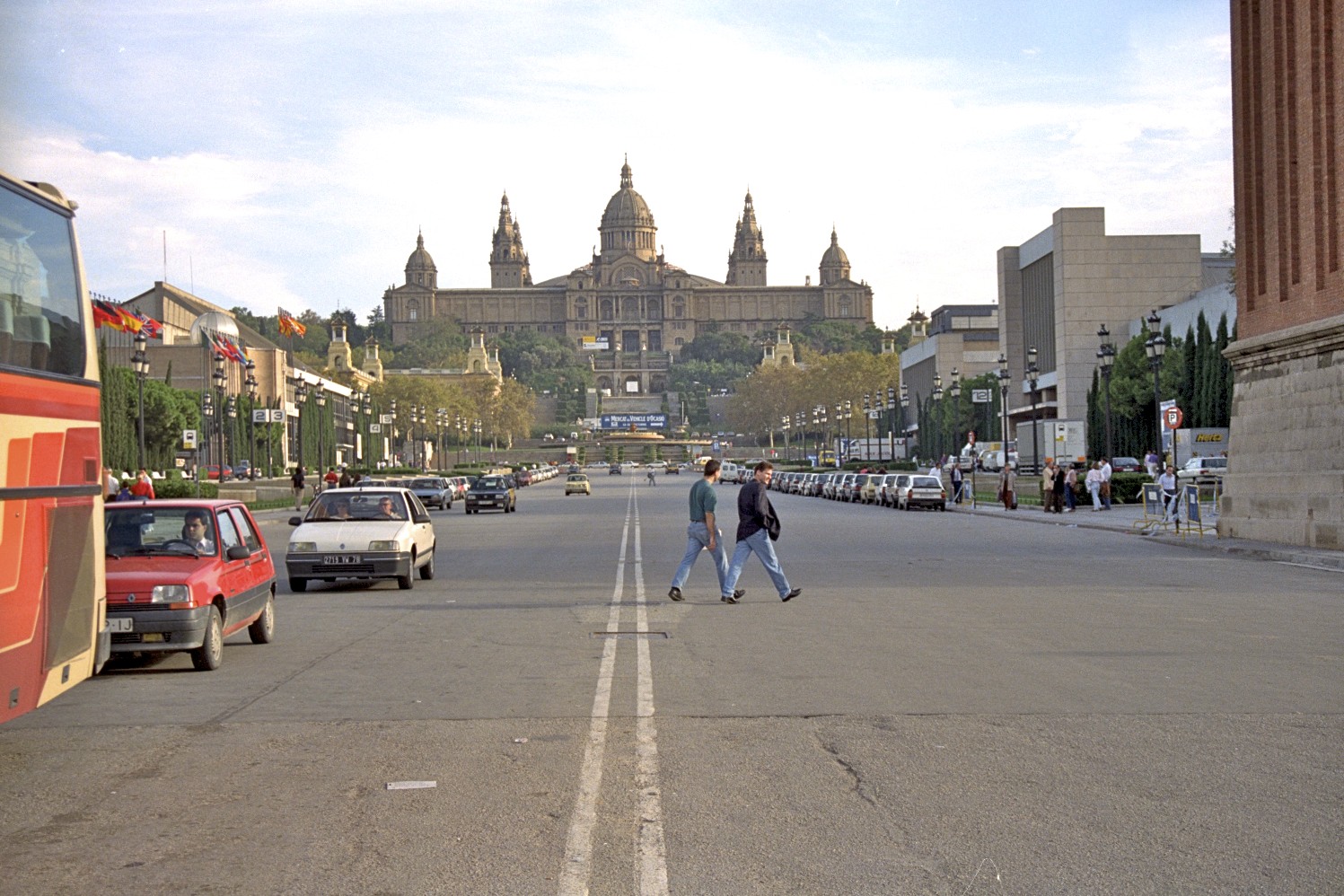 Frá Palau Naçional liggja voldugar tröppur niður brekkuna, inn á milli sýningarhalla kaupstefnunnar í Barcelona, og niður á Spánartorg, Plaça d’Espanya. Þar er gaman að snúa sér við og virða fyrir sér mikilúðlegt útsýnið upp til Palau Naçional.