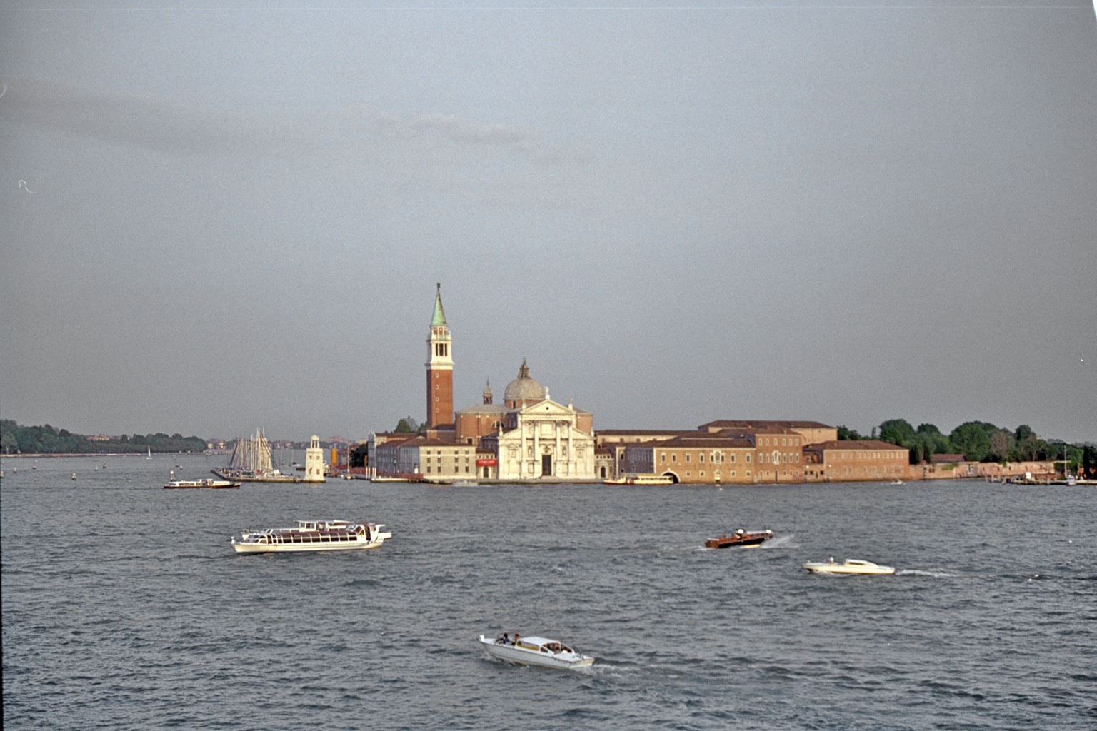 Við byrjum á Isola di San Giorgio. Þangað má komast með almenningsbátaleið 52 frá San Zaccaria við hertogahöllina. Komið er að landi við torgið framan við kirkju eyjarinnar.