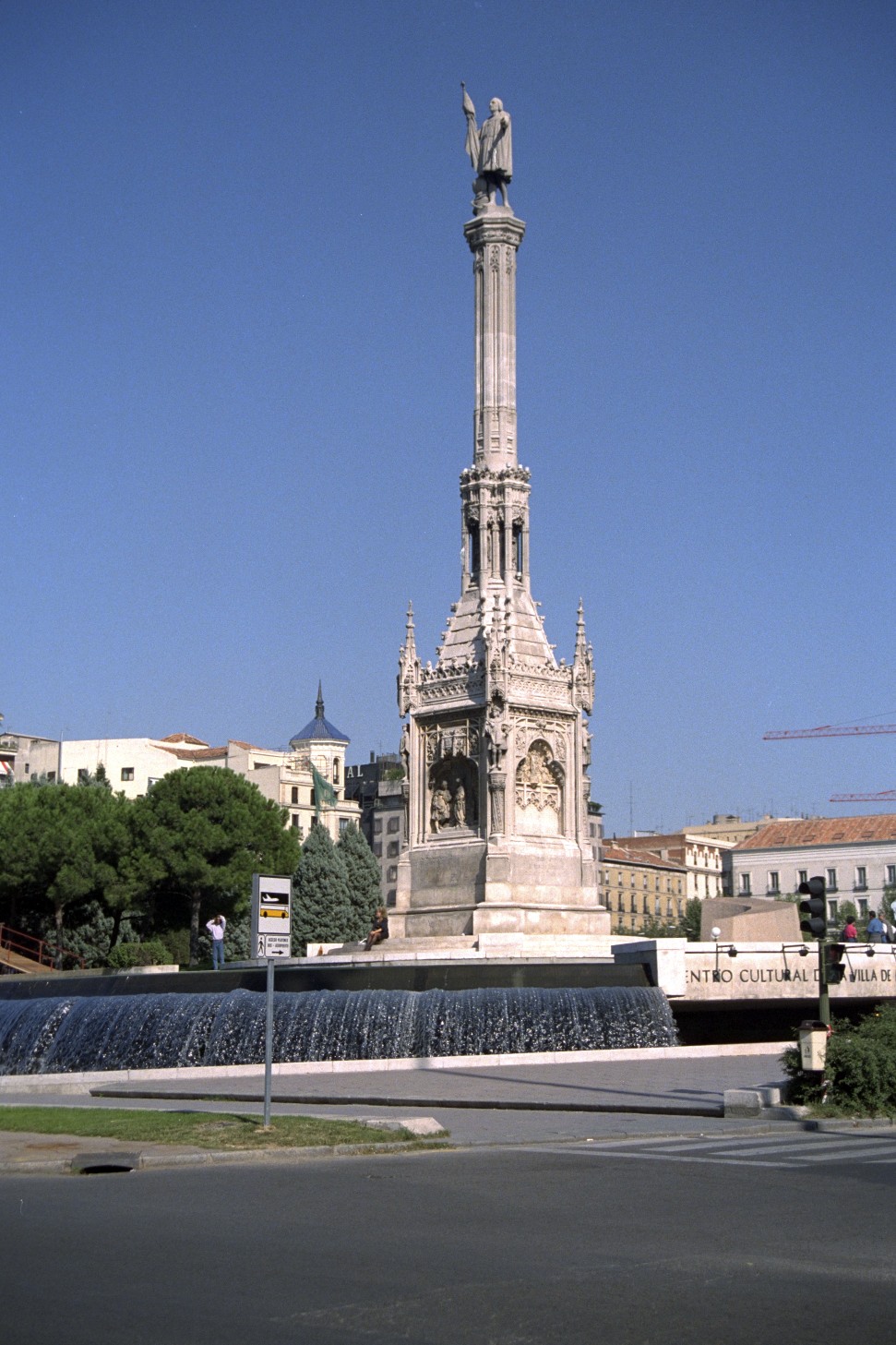 Næst okkur á Plaza de Cólon gnæfir stytta af Kólumbusi yfir fossaföllum og menningarmiðstöð, sem er neðanjarðar undir torginu. Þar er sýningarsalur og leikhús. Inngangurinn er við styttuna. Innst á torginu eru ljósbrúnir minnisvarðar um fræga spánska landkönnuði.