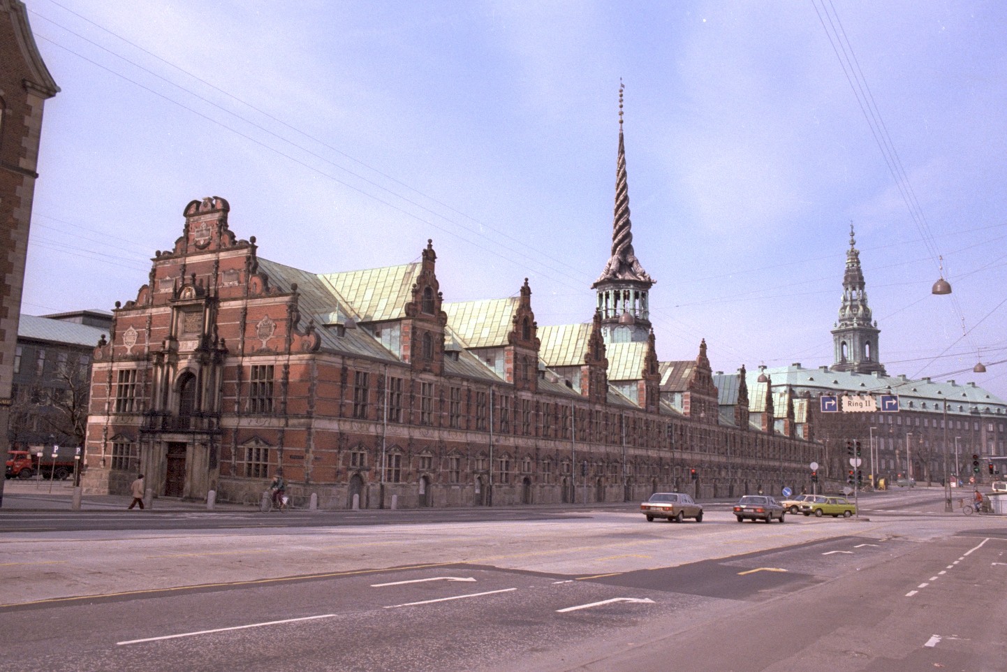 Framundan sjáum við Kauphöllina (Børsen), handan brúarinnar, reista í hollenzkum fægistíl 1619-40 að tilhlutan Kristjáns IV konungs. Kauphöllin er ríkulega skreytt, bæði innan dyra og utan. Mesta athygli okkar vekur turnspíran mikla, ofin saman úr fjórum drekasporðum.