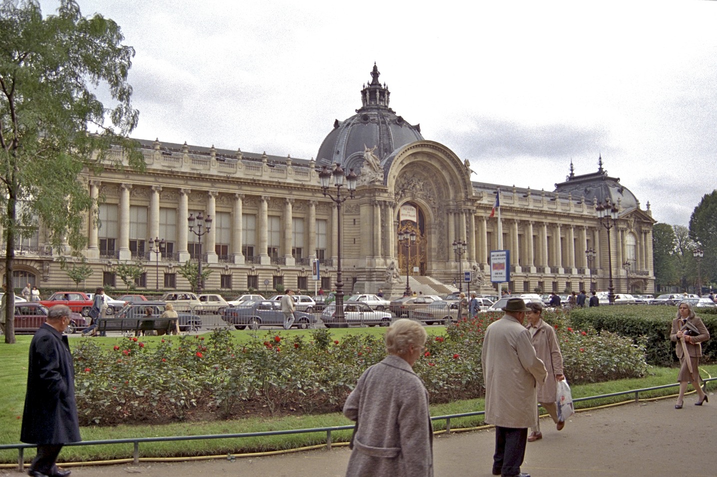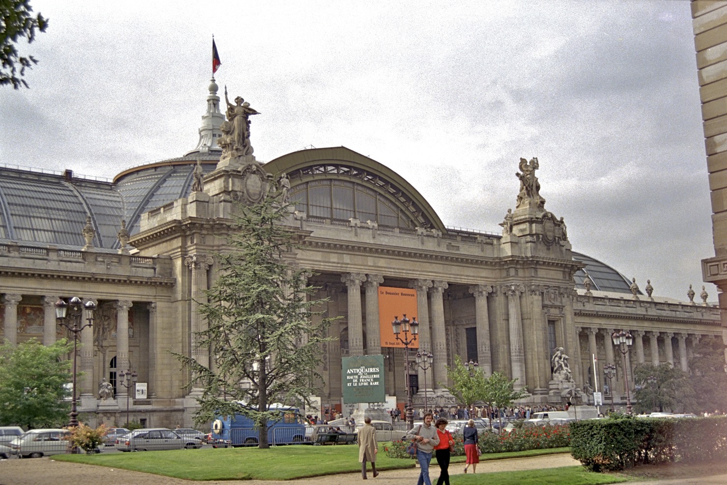 Grand Palais and Petit Palais were built to house the World Fair of 1900. Their structure is of steel and glass, but the exteriors are in the heaviest of the Historical style of architecture, popular at the end of the last century. The fronts of Grand Palais are for example completely lined with Ionic columns.
