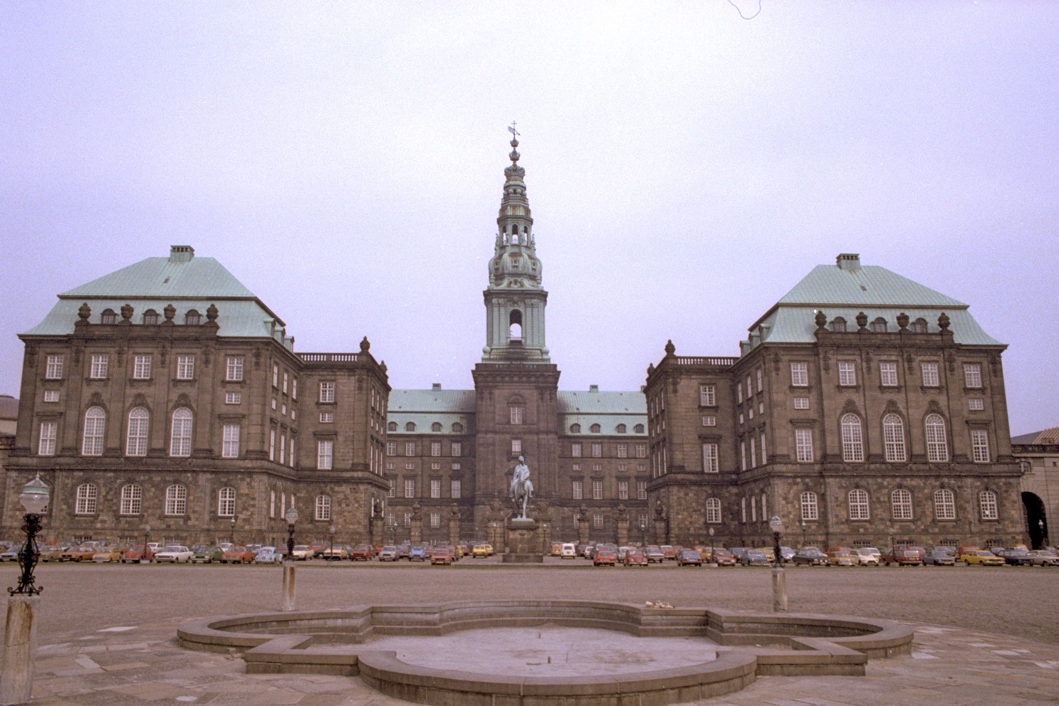Andspænis Týhúsinu er hesthús konungs og við förum inn sund milli þess og Þjóðþings. Við okkur blasir paðreimur Kristjánsborgar í skjóli hallar á alla vegu.