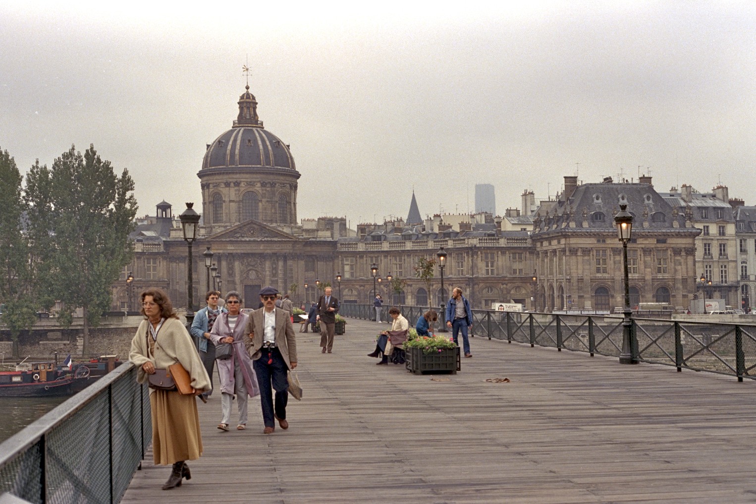 From the middle of the bridge there is a delightful view to all directions, upriver, downriver, north to the Louvre and south to the palace of Institut de France.
