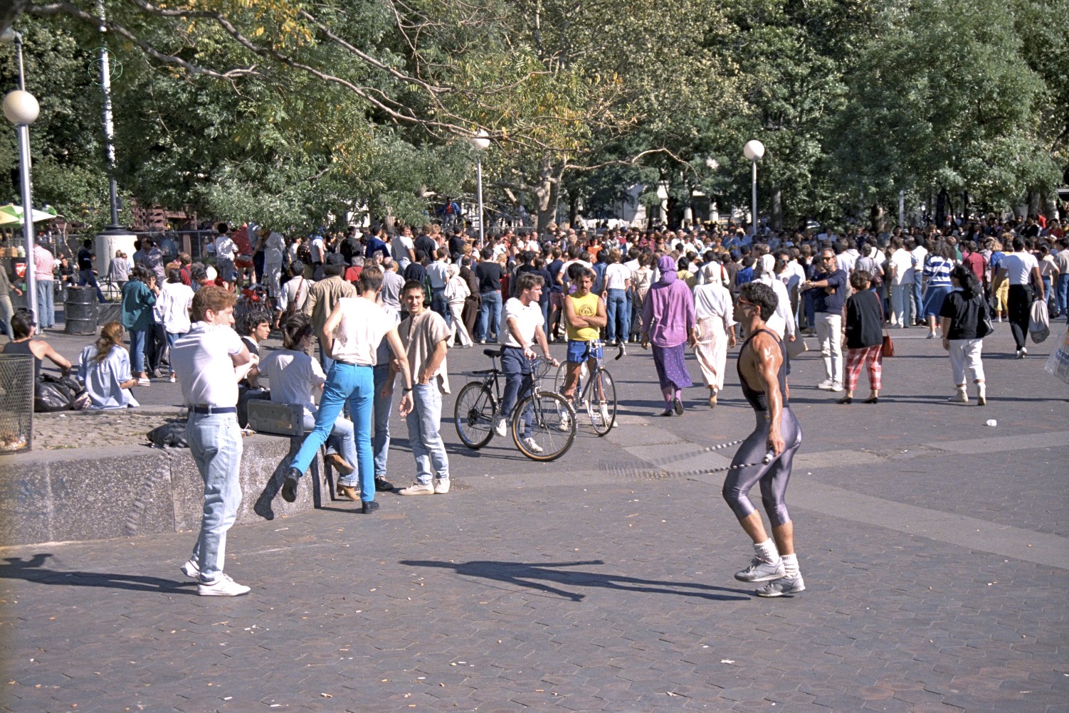 Washington Square er sunnudagsstofa þorpsbúa, eins konar St Germain des Prés. Þar kaupa þeir fíkniefni, tefla skák, renna sér á hjólabrettum, hlusta á farand-tónlistarmenn og ræða um, hvernig verjast megi geðbiluðum skipulagsyfirvöldum, sem vilja láta rífa allt gamalt og gott.