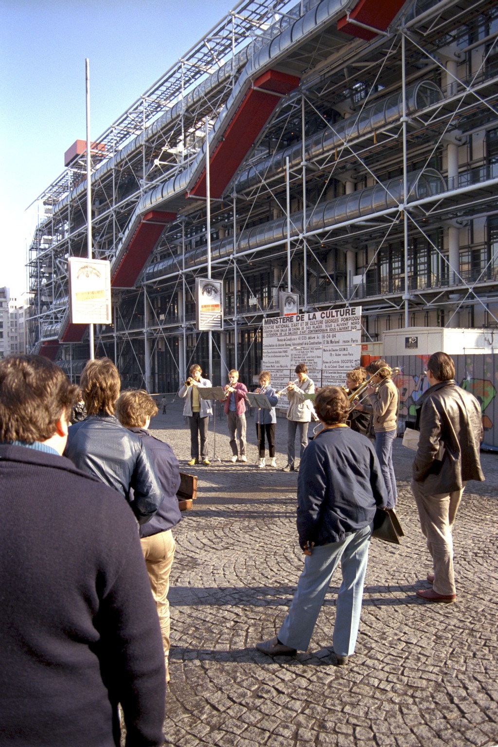 The square in front of Palais Beaubourg is a a lively place. Musical performers and circus artists show their talents for big and small crowds. At the end of the performance the artists walk around with their hats.