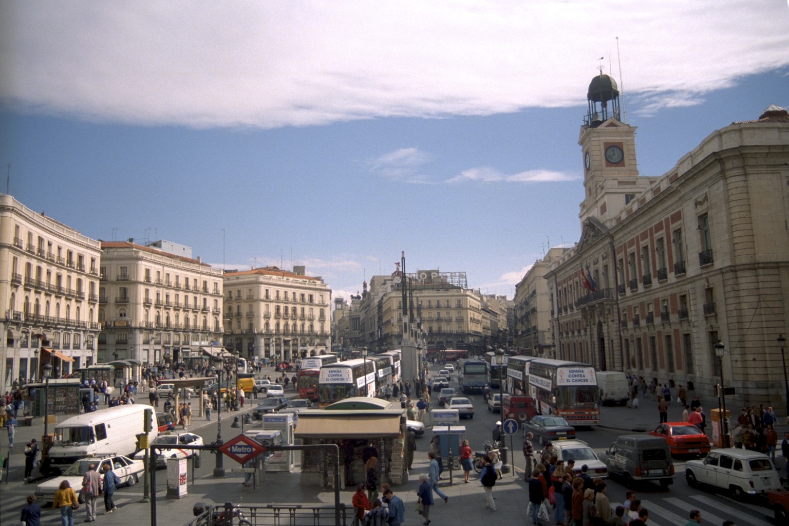 Íbúar í Madrid mæla sér mót á torginu á öllum tímum dagsins og koma þangað í strætisvögnum og neðanjarðarlestum. Allan daginn iðar torgið af lífi. Það er líka staður útifunda og mótmælaaðgerða. Við bjuggum á hótelum við torgið og komumst að raun um, að það er helzt milli klukkan fimm og sjö á morgnana, að kyrrð færist yfir torgið.