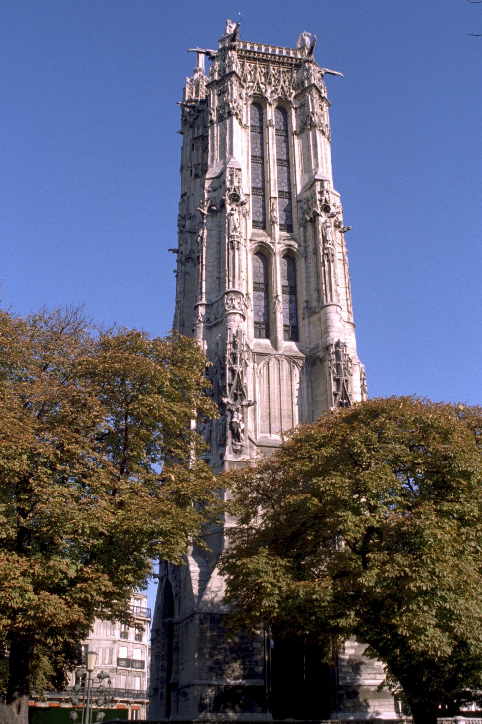 We see to our left the imposing tower of Saint-Jacques from 1523, the only remains of a late Gothic 16th C. church, which was destroyed in the aftermath of the Revolution. A statue of Blaise Pascal is in front of the tower.