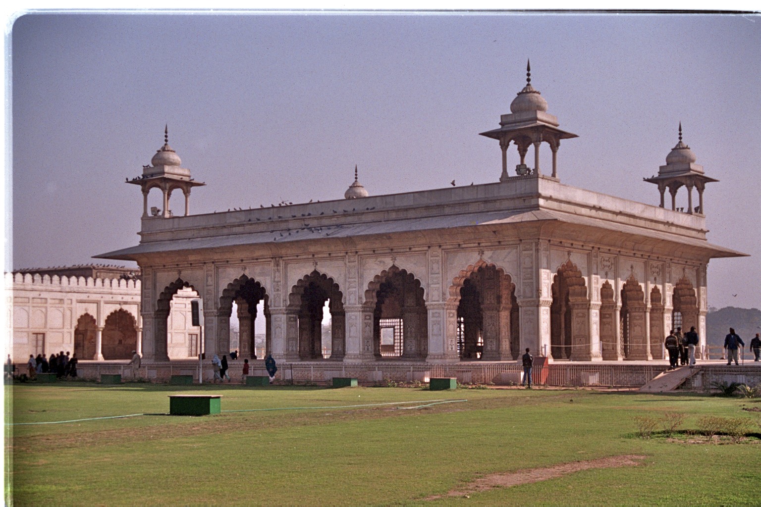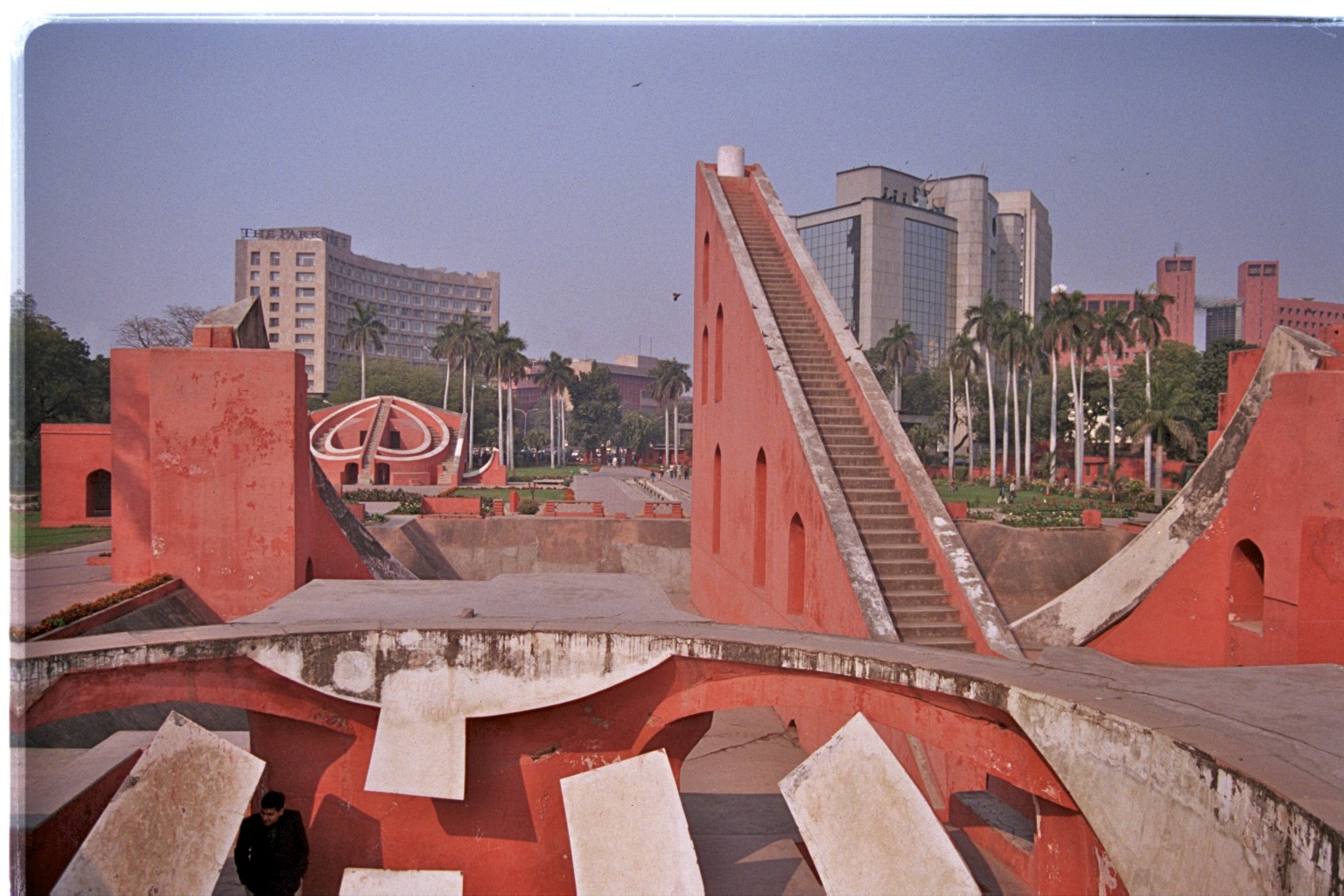 Við göngum götuna til austurs. Þegar við komum fram fyrir stjórnarskrifstofurnar, blasir þinghúsið við í norðri, hringlaga bygging, Sansad Bhavan.