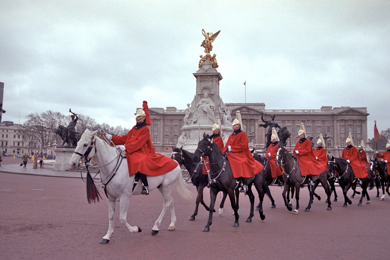 Rétt fyrir 11 koma Horse Guards um torgið norðanvert frá Knightsbridge yfir á The Mall. Horse Guards er konunglega riddaraliðssveitin í glæsilegum búningum. Hún ríður hér daglega framhjá á leið sinni að Horse Guards Parade torginu við hinn enda St James´s Park.